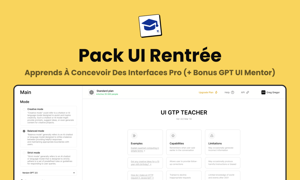 Pack UI Rentrée – Apprends à concevoir des interfaces pro (+ Bonus GPT UI Mentor)