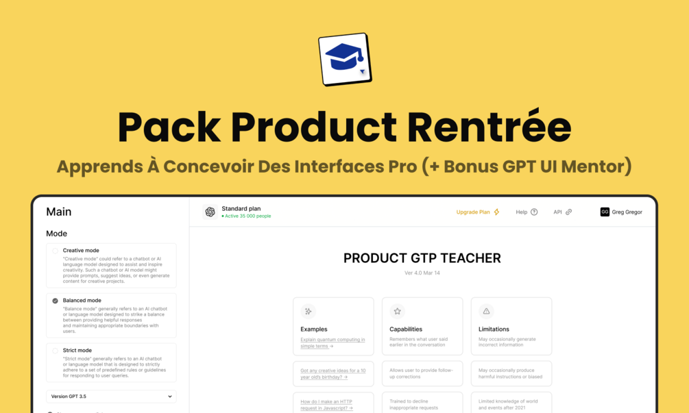 Pack Product Design Rentrée –Maîtrise la conception de produits et d’interfaces (+ Bonus GPT UI Mentor)